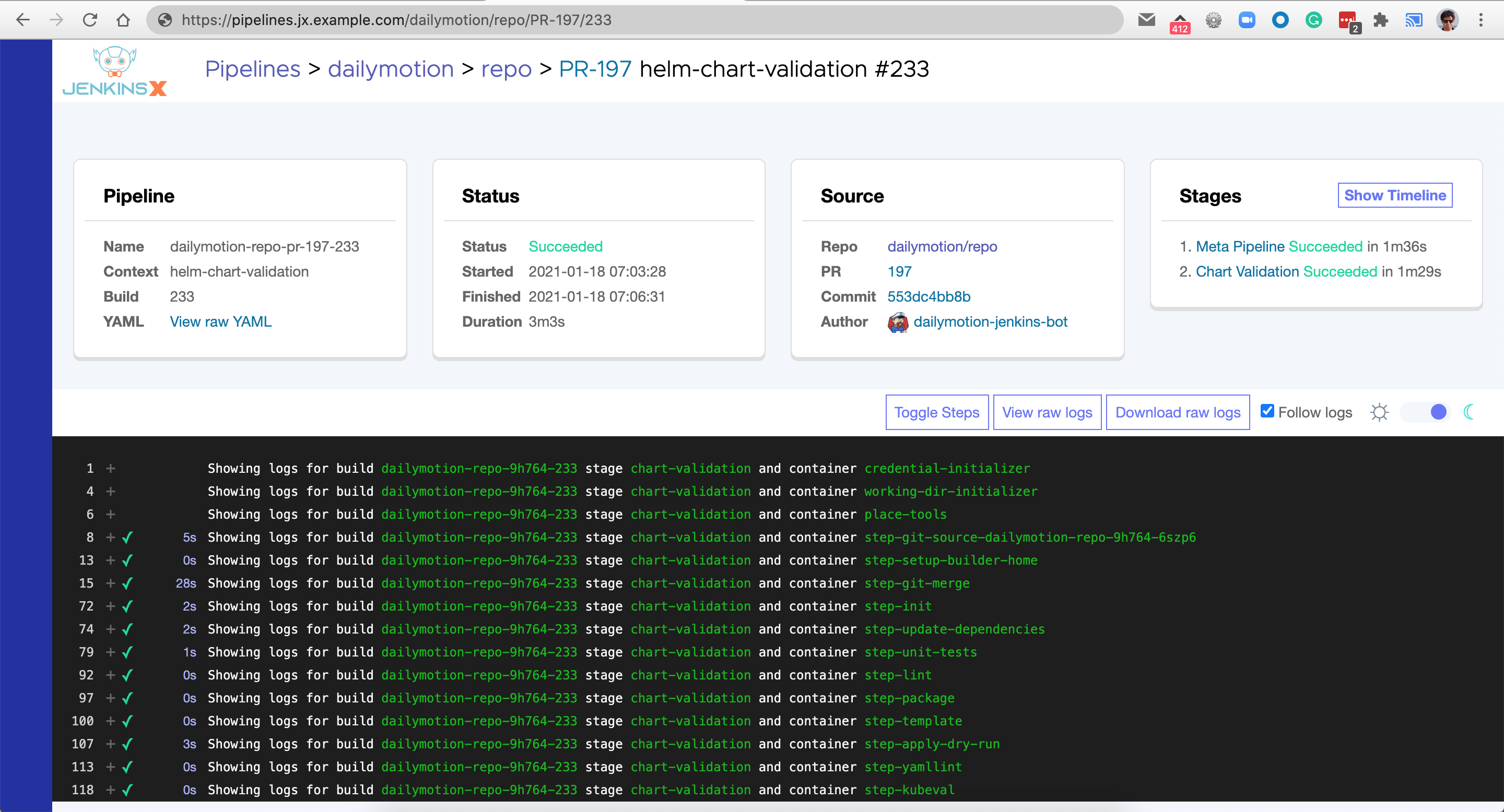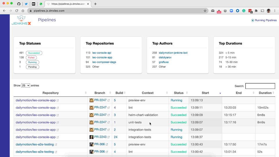 This provides a simple read only web UI for viewing pipelines and pipeline logs and its linked automatically with any Pull Request you create on repositories managed by JayeX.